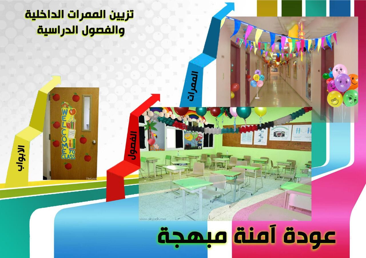 ضمن الاستعدادات للإدارة العامة للتعليم بمنطقة مكة المكرمة للعودة الحضورية الآمنة لـ 200 ألف طالب وطالبة من المرحلة الابتدائية ورياض الأطفال في 800 مدرسة ابتدائية وروضة أطفال، والتي تنطلق مطلع الأسبوع القادم 20 / 6 / 1443هــ ، فقد اعتمدت الإدارة العامة للتعليم بمنطقة مكة المكرمة ما أعده قسم التربية الفنية من خطة لهوية العودة الحضورية تحت شعار " عودة آمنة ومبهجة " حيث تمثل التصور في تزيين المبنى المدرسي من الخارج بإضاءات خارجية بلون أخضر على محيط المدرسة تضاء في فترة المساء للإعلام عن الحضور ، ووضع كشافات خارجية بلون أخضر في أعلى المبنى بعبارة ترحيبية للطلاب والطالبات بالهوية ، وكذلك وضع أعلام مثلثة بألوان مختلفة تُزين المدرسة من الخارج ممتدة من الأعلى إلى الأسفل ، وضع أعلام على سور المدرسة بألوان مختلفة ، وضع زل في مدخل المدرسة ، وضع دمية هوائية أو بلاستيكية في مدخل المدرسة من الخارج والفناء الداخلي ، كذلك تزيين مدخل المدرسة بوضع مراكن زرع زينة ، ووضع استاندات ترحيبية بالهوية ، وعمل قوائم أو شكل قوس من البالونات الملونة ، بالإضافة لزيين ممرات المدرسة الداخلية بوضع شرائط ورقية أو بلاستيكية بألوان وأشكال مختلفة في الممرات والفصول ، وتزيين مداخل الفصول الدراسية من الأعلى بألوان مختلفة من البالونات ، ووضع ملصقات ورسومات مبهجة على أبواب الفصول وداخل الفصل الدراسي .