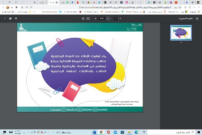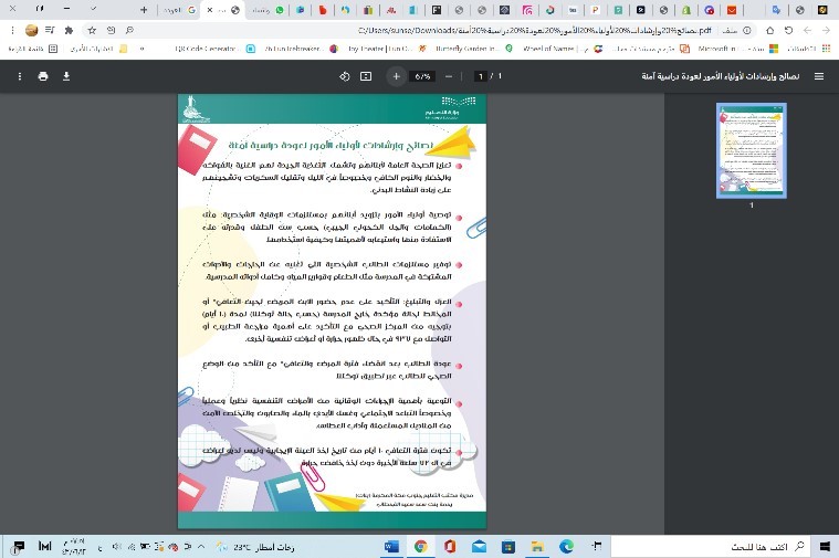 حيثُ تم التأكيد على أهمية تجهيز البيئة المكانية في جميع الفصول، مع استثمار مرافق المدرسة بما يخدم عودة الدراسة الحضورية