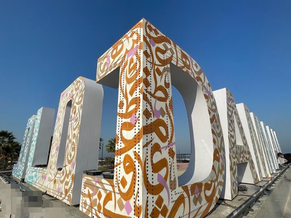 استكملت أمانة المنطقة الشرقية بالتعاون مع لجنة أصدقاء أمانة الشرقية مؤخراً، أعمال تزيين مجسم "الدمام" الواقع بمنطقة الشاطئ بلازا بكورنيش الدمام، والتي نفّذها الفنان م. عبدالله الأنصاري أحد أهم المختصين بفنون الخط العربي بالمنطقة الشرقية.