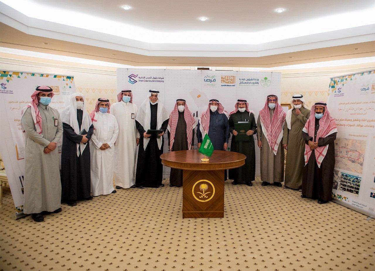 وبارك "سموه" توقيع الإتفاقية التي تمت ما بين أمانة منطقة القصيم ومثلها أمين منطقة القصيم المهندس محمد بن مبارك المجلي ، وشركة حلول المدن الذكية ومثلها رئيس مجلس إدارة شركة باتك (الشركة المالكة لشركة حلول المدن الذكية) أحمد بن محمد الصانع ، بقيمة بلغت (422) مليون ريال لمدة (25) سنة.