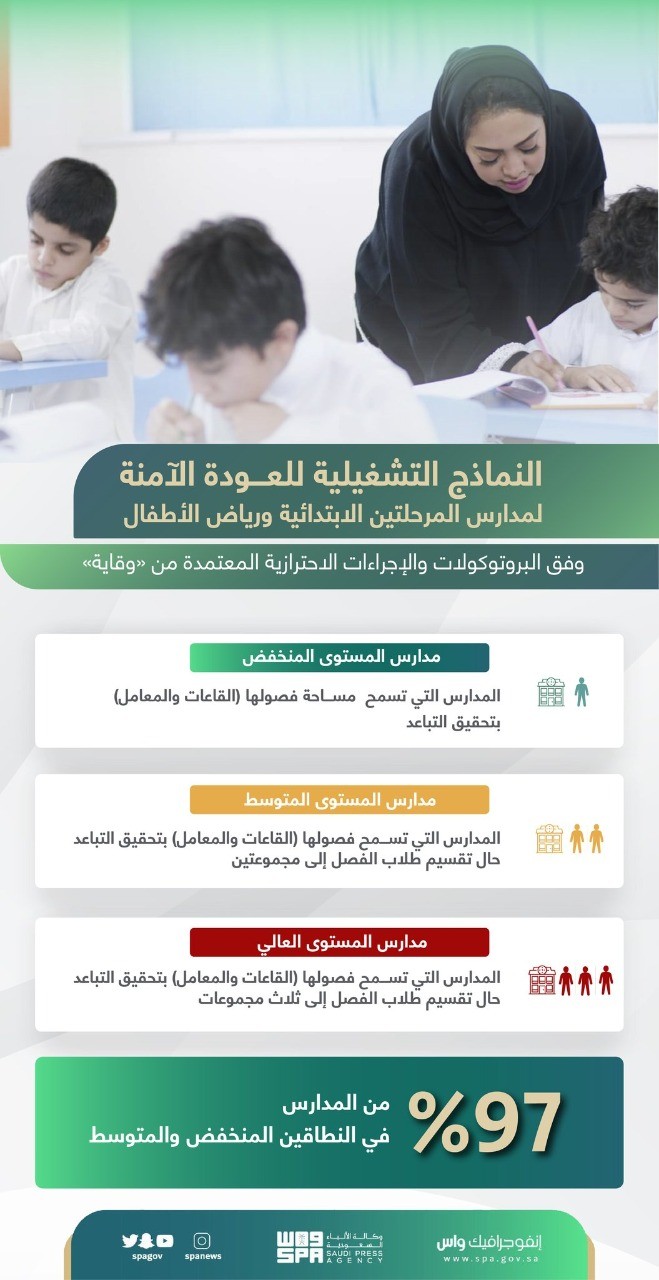 هذا وقد تمت مناقشة آليات العَوْدة الآمنة من خلال اعتماد ثلاثة نماذج تشغيلية لِعَوْدة الدِّراسة في المرحلتين الابتدائية ورياض الأطفال للتّأكيد على تسخير جميع الإمكانات المدرسية لاستمرار العملية التّعليمية بشكل مُنظّم وِفق الإجراءات الاحترازية.
