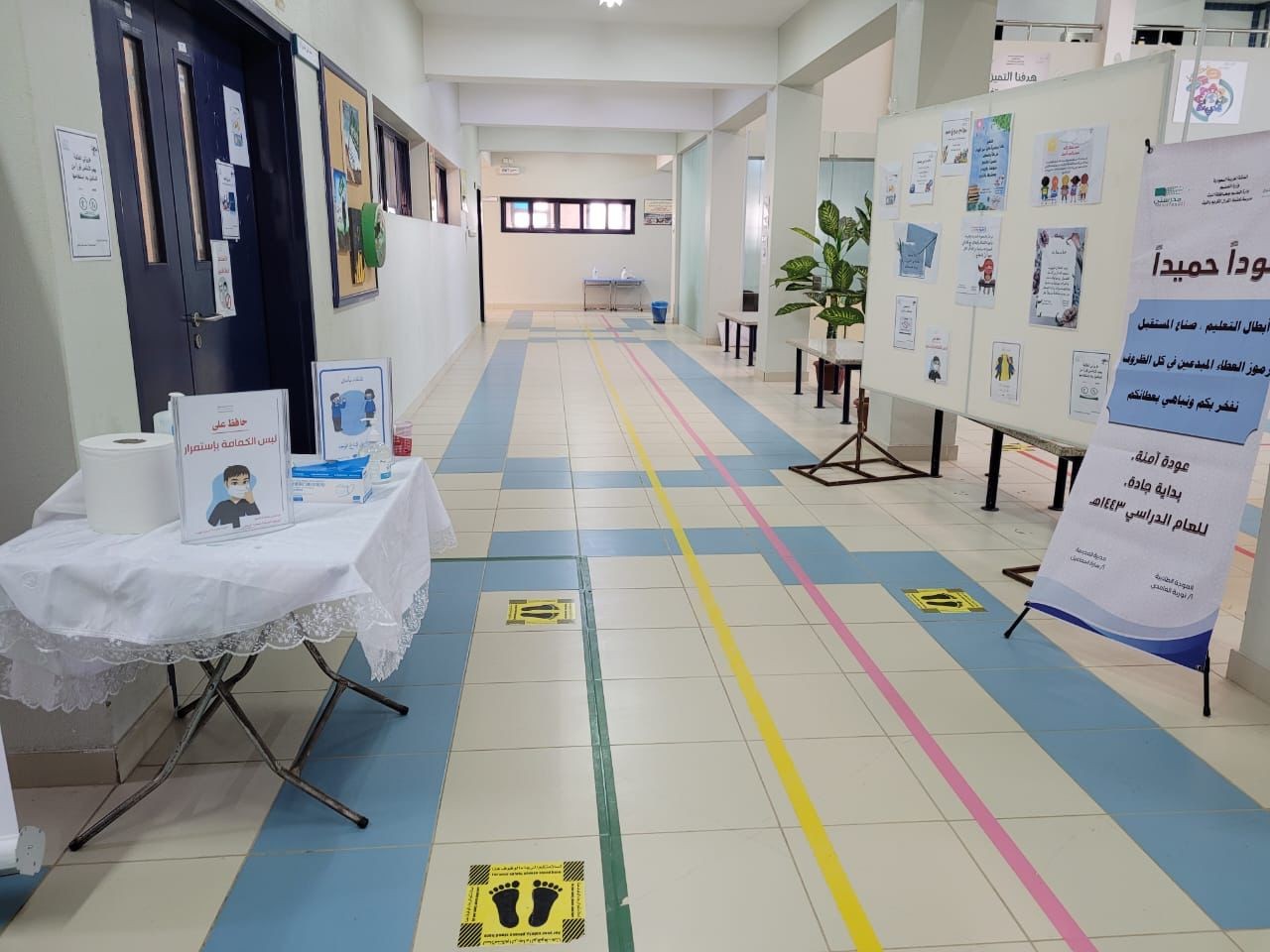 وتضمنت تلك الإجراءات: تهيئة البيئة الصفية والمدرسية من خلال صيانة ونظافة وتعقيم المباني التعليمية، وتوزيع المواد الاحترازية ، وإعادة توزيع الكراسي والطاولات ، وتنظيم مسارات للدخول والخروج، بما يحقق التباعد الجسدي، والتقليل من المخاطر، بالإضافة إلى وضع اللوحات الإرشادية والوقائية والملصقات التوعوية، وتجهيز غرف العزل في حالات الاشتباه أو الإصابة.