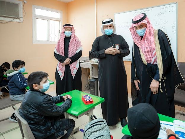 وزار المحافظ، مدرسة الشيخ محمد بن عبدالوهاب الابتدائية والتقى بأولياء أمور الطلاب ، كما اطلع على الفصول الدراسية وإجراءات المدارس في تطبيق التباعد بين الطلاب، وبعد ذلك توجه المحافظ إلى مدرسة عمر بن عبدالعزيز الابتدائية وتجول على مرافق المدرسة واطلع على العيادة المدرسية وما تقدمه من خدمات صحية للطلاب.