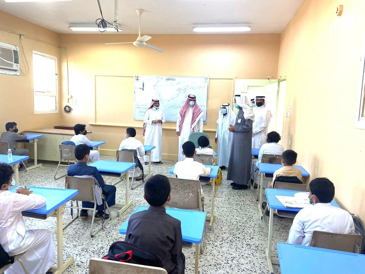 كما أشاد بالتزام الطلاب والطالبات بارتداء الكمامات واتخاذ جميع الإجراءات الكفيلة بالحفاظ على صحتهم وحمايتهم داخل وخارج المدارس مقدمًا شكره وتقديره لمدير مكتب تعليم بيش الاستاذ هادي الاثلاوي على جهوده المبذولة وفريق العمل معه والوقوف ميدانيًا على مدارس المكتب بداية من أول يوم دراسي.