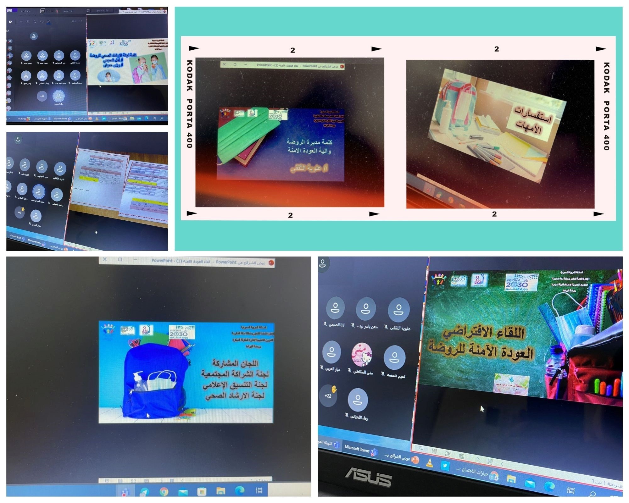 هذا وقد تم شرح آلية تقسيم المجموعات ومواعيد الدوام الحضوري والمنصة، والحالات المستثناة من الحضور، كما تم تداول ضرورة توفير مستلزماتهم الدراسية واحتياجاتهم الغذائية الصحية مع التأكيد على التزامهم بالإجراءات الاحترازية التي تضمن وقايتهم الصحية في البيئة المدرسية، وأهمية التهيئة النفسية للأطفال، وتقديم أنشطة وفعاليات ترفيهية وبدنية ومسرح الطفل والعديد من الاناشيد ومسابقات للأطفال