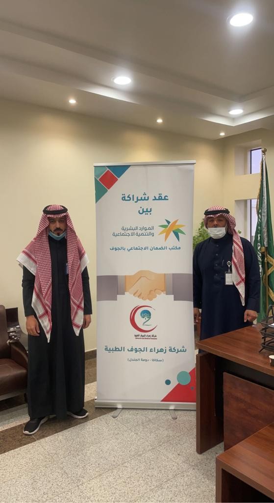 تم توقيع عقد شراكه مجتمعيه بين المكتب الرئيسي للضمان الإجتماعي بمنطقة الجوف مع شركه زهراء الجوف الطبيه ،