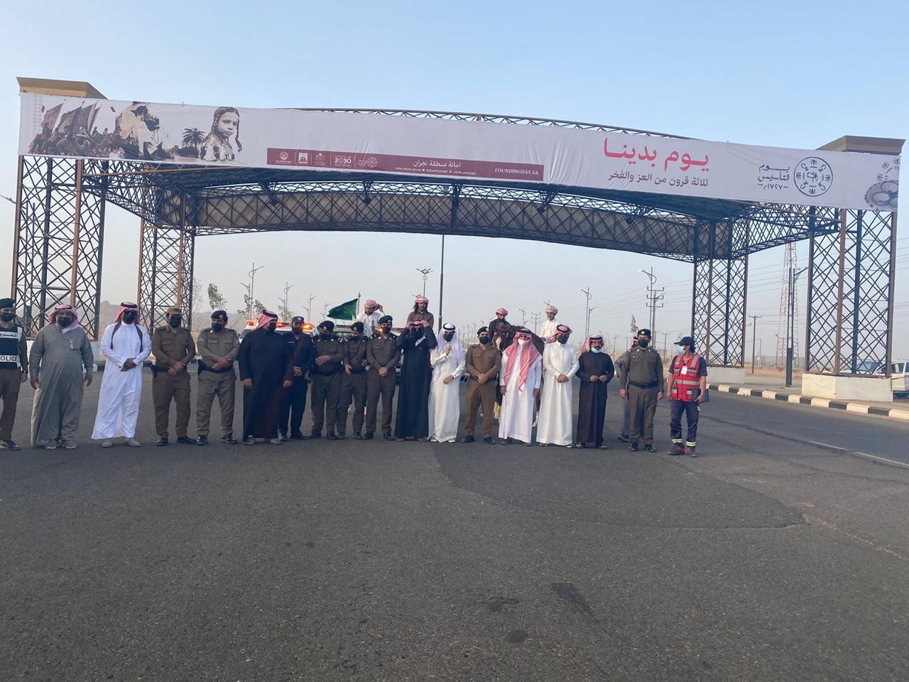 وعبّر الخالدي في كلمة بهذه المناسبة بأن يوم التأسيس يأتي تأكيد لحجم المكانة التي تتسيدها المملكة العربية السعودية وانطلاقًا من قوتها التي تبرهنها ثلاثة قرون مضت مرورًا بمراحل التطور التي حظيت به المملكة على كافة الأصعدة ، ومراحل البناء والتشييد لحضارة يشار لها بالبنان، مقدمًا التهنئة للحكومة الرشيدة ، ولمقام خادم الحرمين الشرفين الملك سلمان بن عبدالعزيز ولولي عهده صاحب السمو الملكي الأمير محمد بن سلمان ولوزير الداخلية صاحب السمو الملكي الأمير عبدالعزيز بن سعود ولأمير منطقة نجران صاحب السمو الأمير جلوي بن مساعد ولنائبه صاحب السمو الملكي الأمير تركي بن هذلول - حفظهم الله - مهنئًا الشعب السعودي كافة بهذه المناسبة الغالية علينا جميعًا.