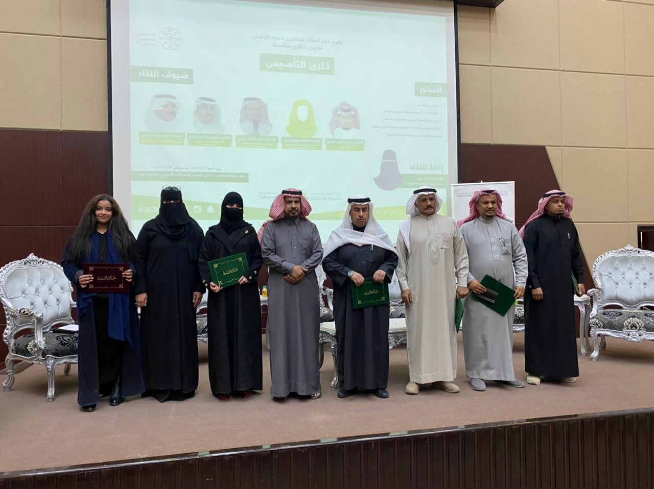 نظم مركز الملك عبد العزيز للحوار الوطني بمنطقة الحدود الشمالية اليوم مقهى حواري بعنوان ذكرى التأسيس حيث أدارة الحوار مشرفة الحوار بمنطقة الحدود الشمالية الأستاذة باسمه خليل الضويمر قدمت عدد من المختصين في التاريخ والاعلام وتمكين المرأة والشعر،