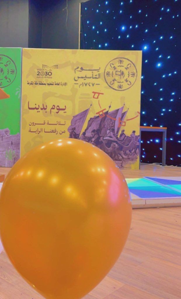 بحضور صاحبة السمو الملكي الأميرة نورة بنت فهد بن مقرن بن عبدالعزيز آل سعود نظمت الإدارة العامة للتعليم بمنطقة مكة المكرمة ممثلة في إدارة نشاط الطالبات اليوم الاثنين الموافق 1443/7/27هـ المسيرة الفنية لاحتفالية بمناسبة ذكرى يوم التأسيس تحت شعار ( يوم بدينا ) ثلاثة قرون من العز والفخر والعطاء، وذلك بحضور مساعدة مدير عام التعليم للشؤون التعليمية لمياء بنت عبدالعزيز بشاوري والضيفات الكريمات ومنسوبات الإدارة. نفذت البرنامج منسوبات إدارة نشاط الطالبات تحت إشراف مديرة الإدارة د. ليلى الصاعدي.