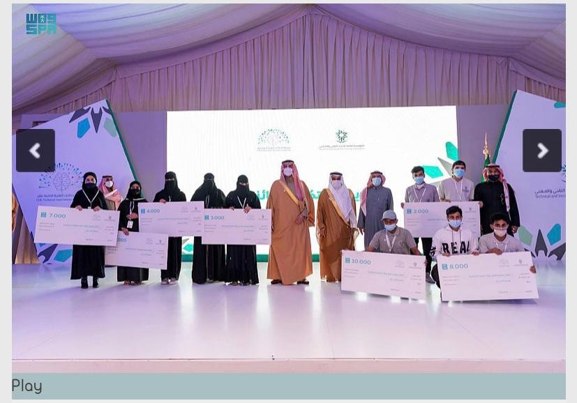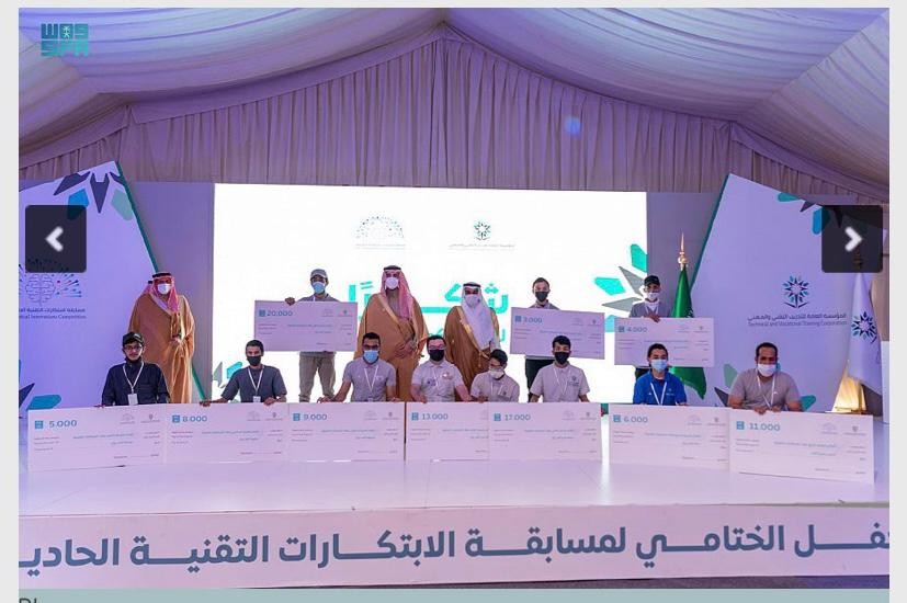 توج صاحب السمو الملكي الأمير فيصل بن نواف بن عبدالعزيز أمير منطقة الجوف 18 من المبتكرين الفائزين بالمسابقة الخليجية للابتكارات التقنية في نسختها الحادية عشرة ، بجوائز بلغ مجموعها 137 ألف ريال وذلك في الحفل الختامي الذي أقيم اليوم بمقر إدارة التدريب التقني والمهني بمنطقة الجوف بحضور معالي محافظ المؤسسة العامة للتدريب التقني والمهني الدكتور أحمد بن فهد الفهيد .