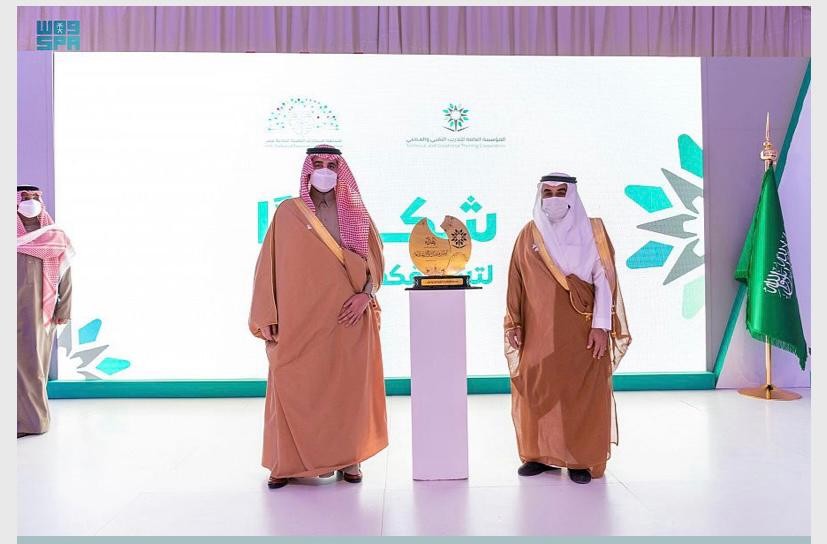 واطلع سموه خلال الحفل المعد لهذه المناسبة عرضا عن يوم التأسيس الذي احتفلت به المملكة مؤخرا، وكذلك عرضا عن منجزات المؤسسة العامة للتدريب التقني والمهني .