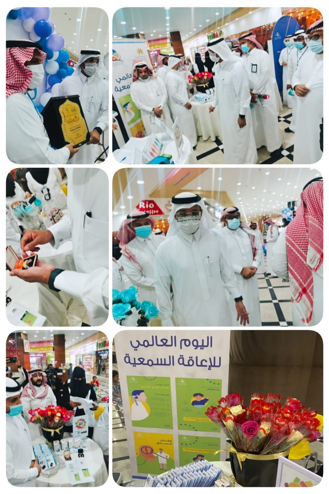 أقامت جمعية رعاية المعاقين بمحايل عسير مساء أمس الأحد 3-8-1433هـ بالواحة مول فعاليتي اليوم العالمي للسمع واليوم العالمي للسمنة بالشراكة مع القطاع الصحي بمحايل وقد تجول مدير القطاع الصحي الأستاذ محمد زيد ومن رافقه على الأركان المشاركة والإطلاع على ما تحتويه من خدمات.