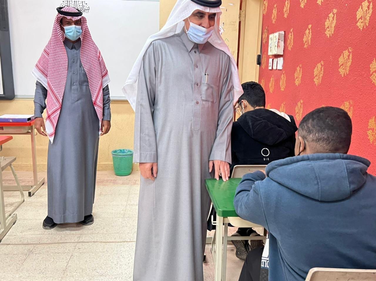 تفقد مدير عام تعليم الحدود الشمالية الاستاذ عثمان العثمان سير الاختبارات للاختبارات النهائية للفصل الدراسي الثاني بمتوسطة هشام بن عبدالملك .