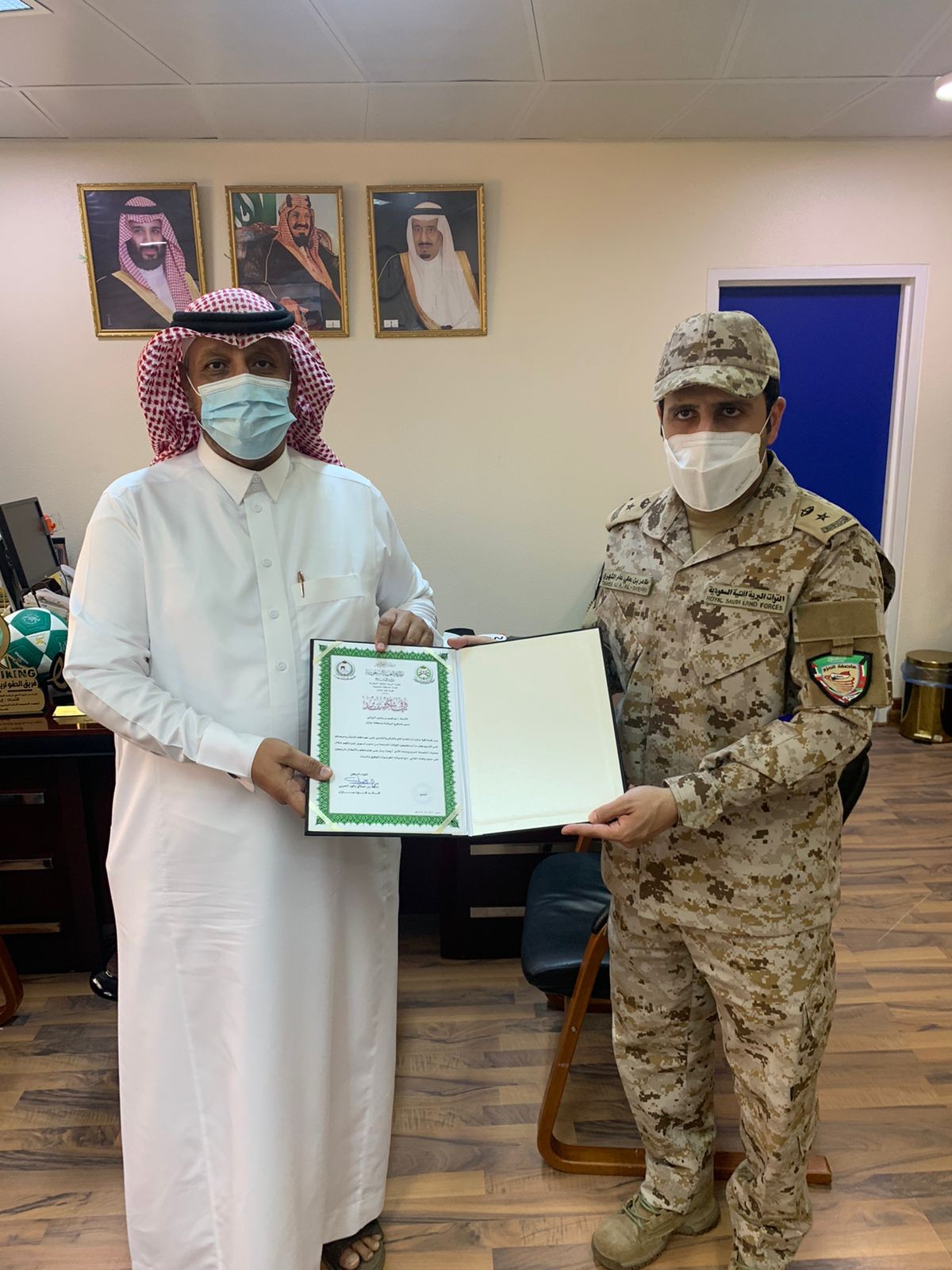 كرم سعادة قائد قوة جازان  اللواء ركن /ماجد بن حمدي  الحربي ، مدير فرع الجمعية العربية السعودية لبيوت الشباب بمنطقة جازان الأستاذ عبدالرحمن بن حسن السروري  حيث قدم المقدم  / طاهر الشهري بالنيابه الشكر  لفرع الجمعية  على جهودهم المبذوله تجاه منسوبي القوات المسلحة بالمنطقة وعلى اهتمامه بالابطال المرابطين في الحد الجنوبي في تسهيل جميع إجراءاتهم  أثناء عمليتي ” عاصفة الحزم وإعادة الأمل”.