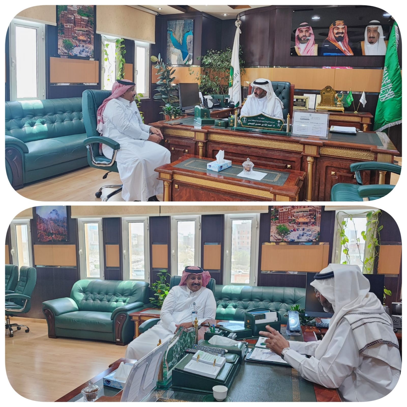 من جهة أخرى, التقى المهندس عبدالله الويمني اليوم بمدير تعليم منطقة عسير الدكتور أحمد خضران العمري، وجرى خلال اللقاء تعزيز الشراكة والتعاون والتنسيق حول مشروع مدارس عسير الخضراء وبرامج التوعية البيئية وتبادل الخبرات بين الجهتين، يأتي ذلك في إطار التواصل الأفقي بين الإدارات الحكومية.