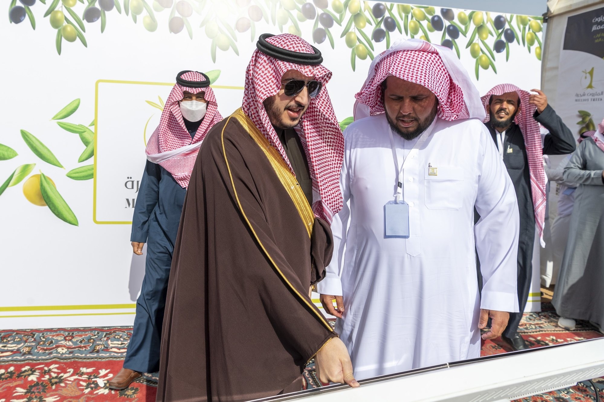 وكان في استقبال سموه في موقع المشروع مالك المزرعة ناصر بن عبدالعزيز الحمد والعديد من المسؤولين والقائمين على المصنع الذي يستهدف الاستفادة من إنتاج المنطقة الوفير من الزيتون لعصر الزيت، مع الاستفادة من مخلفات الزيتون بعد العصر "الأغصان والأوراق" في الحطب وفحم التدفئة وغيرها؛ حيث ينتج المشروع 2000 طن من ثمار الزيتون و 200 طن من الزيت.