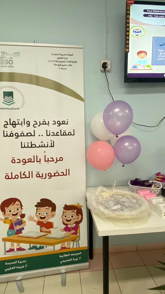حيث تم استقبال الطالبات بالورود والحلوى ابتهاجاً وترحيباً بعودتهن لمدارسهن، كما نظمت الإدارة المدرسية العديد من البرامج والفعاليات الترفيهية والتهيئة النفسية لهن .