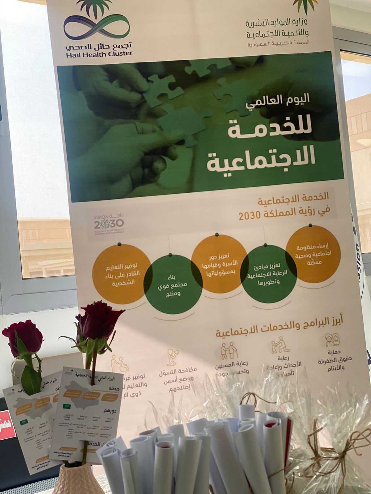 تزامنًا مع اليوم العالمي للخدمة الاجتماعية شاركت يوم امس الاربعاء الموافق 20 شعبان 1443هـ وحدة الحماية الأسرية بمنطقه حائل باليوم العالمي للخدمة الاجتماعية والذي أقيم بمجمع إرادة للصحة النفسية تحت شعار ( هذا هو أوان ) وجاء ذلك بناء على توجيهات مدير عام فرع وزارة الموارد البشرية والتنمية الاجتماعية بمنطقة حائل الاستاذ فريح العياد وبإشراف مدير الوحدة الاستاذ فهدالعتيبي على هذه المبادرة الفعالة من واقع التعاون بين أقسام الخدمة الاجتماعية بمختلف الجهات واللجان المشاركة واحتوى ركن الحماية الاجتماعية على كتيبات وبروشورات تهدف للتوعية والوقاية من العنف الأسري والحماية من الإيذاء