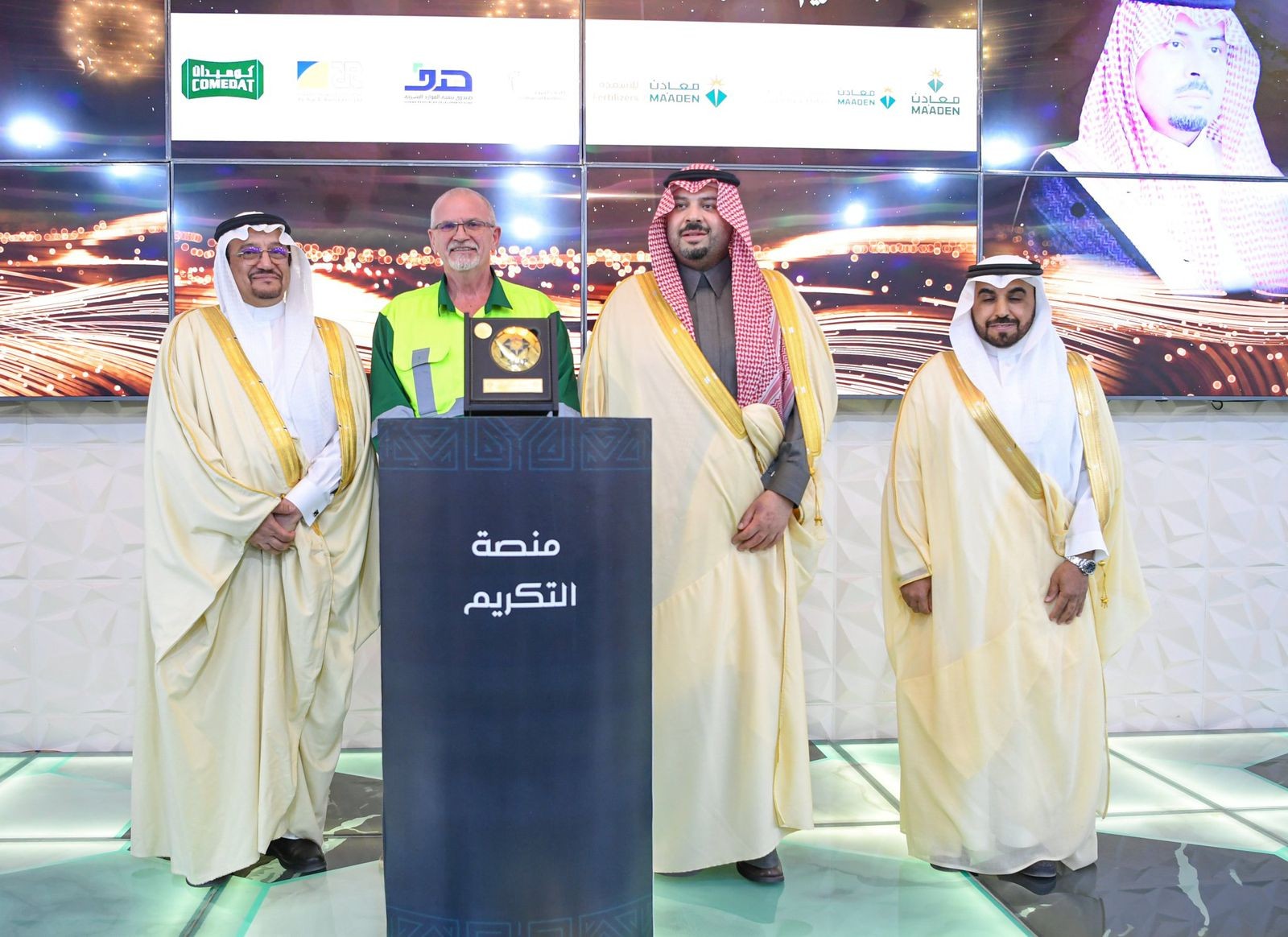 وفي الختام ..كرّم سموه ومعالي وزير التعليم الشركات الراعية للمتدربين، والمتدربين المتفوقين.