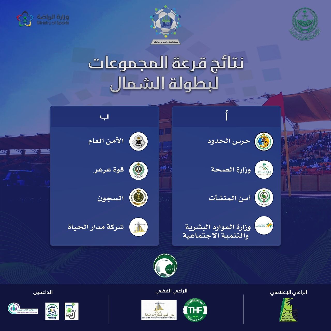 بموافقة سمو أمير منطقة الحدود الشمالية وموافقه الإتحاد السعودي لكرة القدم، وتحت إشراف فرع وزارة الرياضة بمنطقه الحدود الشمالية، سوف تنطلق بطولة الدوائر الحكومية والقطاع الخاص حيث ينظمها الأستاذ"يوسف بن محمد العنزي والتي تشارك فيه  8 إدارات على ملعب مدينة الأمير عبدالله بن عبدالعزيز بن مساعد الرياضية  بشهر رمضان المبارك، بالمنطقة..