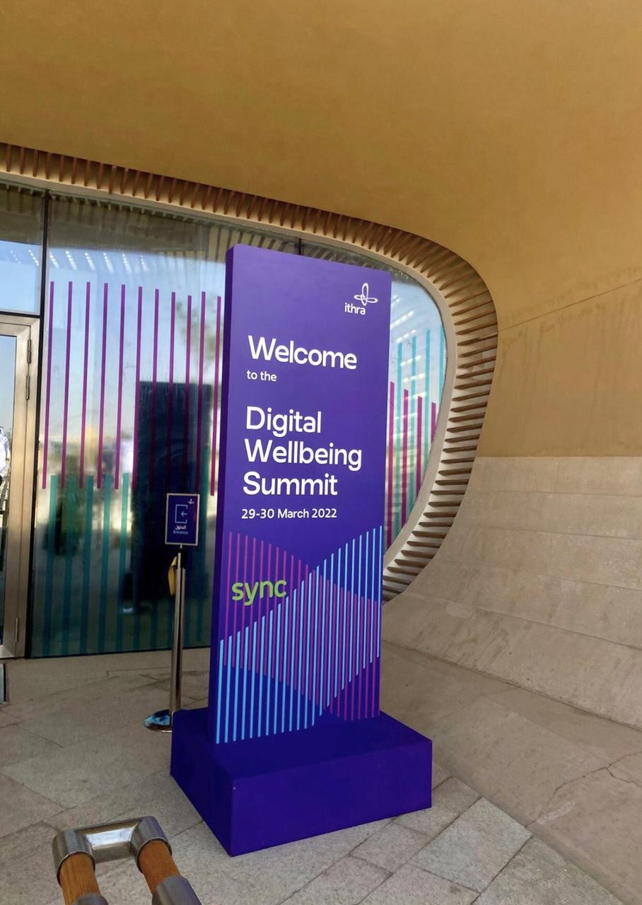 بكلمة تلخص تأثير التقنية على حياتنا ومفهوم الاتزان الرقمي بمنظورٍ جديد ، وإحداث نقلة نوعية عالمية في الاتزان الرقمي من خلال هذه القمة .