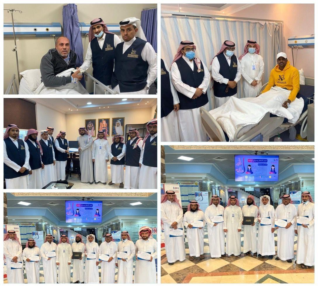 حيث بدأت الزيارة بمقابلتهم والتعريف بأهمية وأهداف الزيارة، ومن ثم قام الفريق بزيارة المرضى ورفع معنوياتهم والإطمئنان عليهم وتقديم هدايا عينية تحتوي على ساعة يد وبطاقة وحلوى شوكليت، وحُدد قسمي الباطنية رجال وجراحة رجال وأقسام أخرى إستهدفت 55مريضا، وكان للزيارة أثر بالغ في نفوس المرضى يعبر عن تعاون فئات الوطن الغالي في التآزر والإهتمام ، وقدمت إدارة جمعية الدعوة والأرشاد وتوعية الجاليات شهادات شكر وتقدير لإدارة المستشفى وفي ختام الزيارة شكر مدير المستشفى فريق الزيارة وأثنى على المبادرة كما قدمت إدارة المستشفى شهادات شكر وتقدير من المستشفى للقائمين على هذه المبادرة التابع للجمعية وهي من المبادرات والشراكات المجتمعية المثمرة، كما قدمت إدارة المستشفى عرض خصم خاص لإدارة وأعضاء جمعية الدعوة والأرشاد إكراما لهم على ما يقدمونه من عمل إنساني إجتماعي