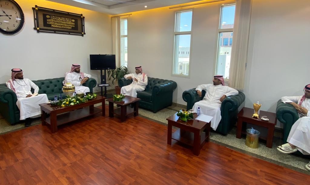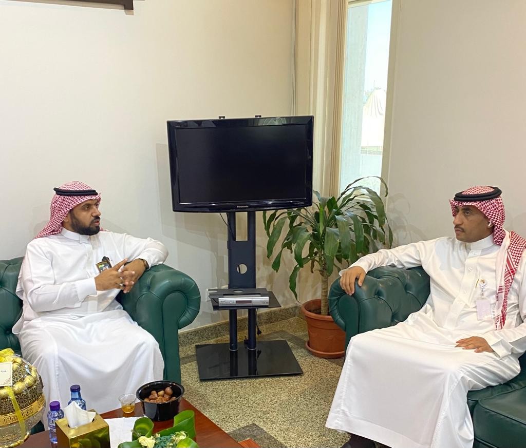 إستقبل مدير عام فرع وزارة الموارد البشرية والتنمية الاجتماعية بمنطقة الجوف الاستاذ نايل بن عبالعزيز الرويلي صباح الثلاثاء ١٤٤٣/١١/٨هـ بمكتبه مدير عام فرع وزارة التجاره الاستاذ سامي سعود الرويلي .
