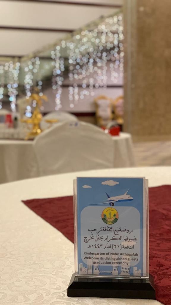 أطلقت ‏روضة نبع الثقافة بالإدارة العامة للتعليم بمنطقة مكة المكرمة حفلها الختامي لتخرج أطفال الروضة يوم الخميس الموافق  10 - 11- 1443هـ بقاعة مكارم منى ، نفذته إدارة الروضة بالتعاون مع جميع المعلمات والأطفال تحت إشراف مديرة روضة نبع الثقافة ريسة عز الدين وذلك بمشاركة المنسقات للبرامج وصايف وأسماء باربود.