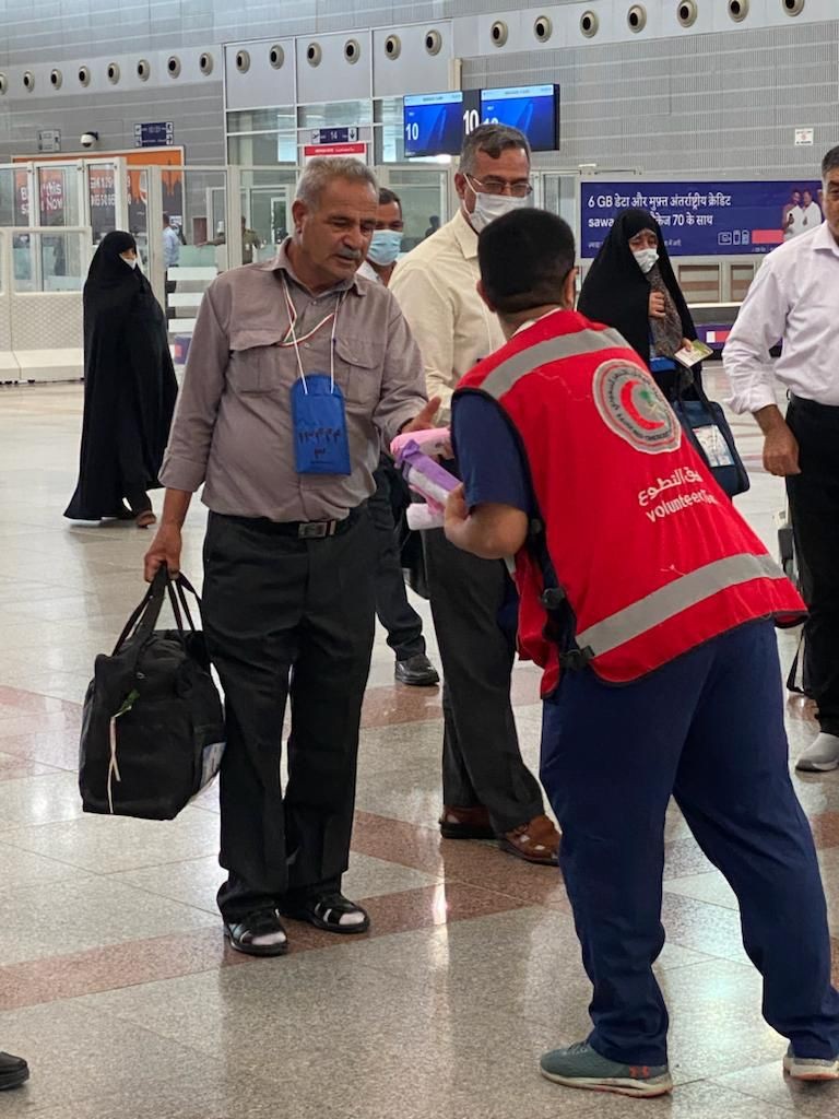 استقبلت الفرق التوعوية والتطوعية لهيئة الهلال الأحمر السعودي، وفود الحجاج القادمين بمطار الملك عبدالعزيز الدولي بجدة، بالورود، والمظلات الواقيه للشمس، والإرشادات التوعوية الإسعافية؛ لرفع الوعي الإسعافي لدى الحجاج، وذلك من منطلق الحرص على المحافظة على صحة حجاج بيت الله الحرام وسلامتهم.