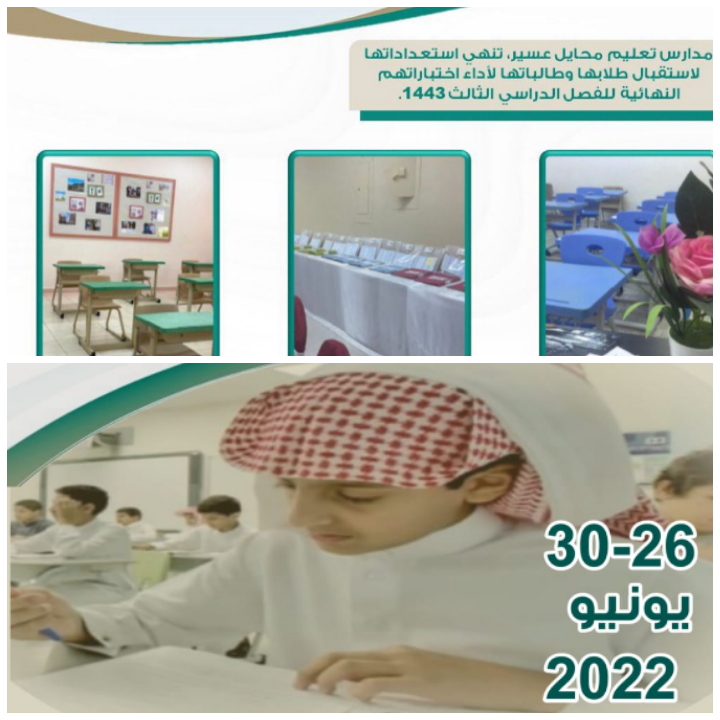 إدارة تعليم محايل عسير  تعلن جاهزيتها لبدء الاختبارات النهائية للفصل الدراسي الثالث 1443