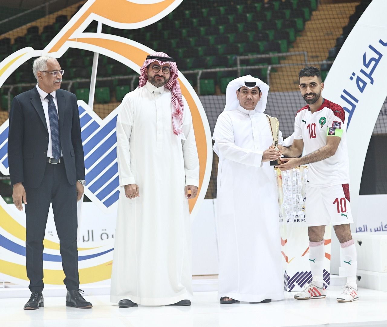 وفاز لاعب المنتخب المغربي أنيس العيان بجائزة أفضل لاعب في المباراة النهائية لبطولة كأس العرب لكرة قدم الصالات 2022.