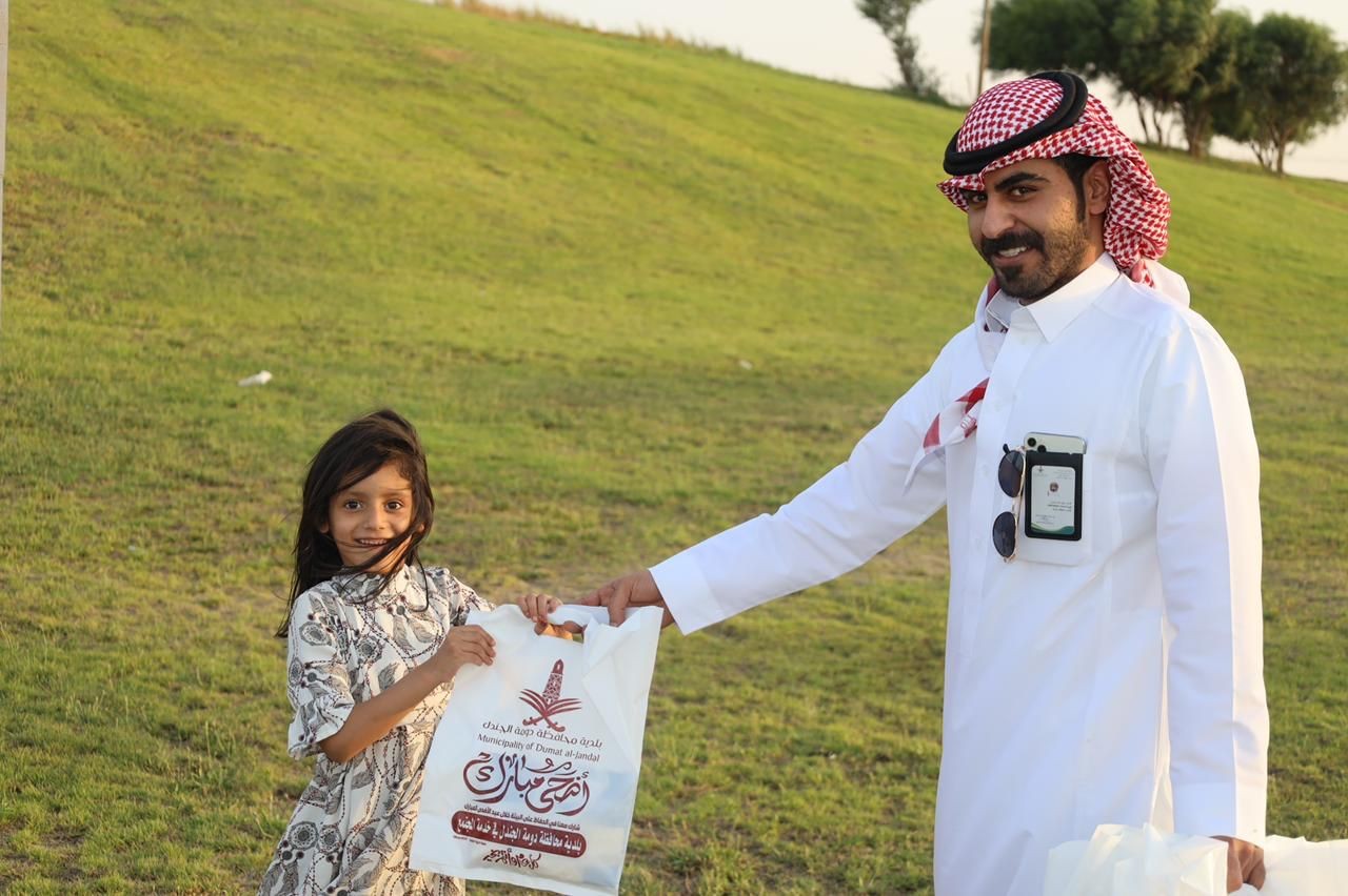 ضمن إستعدادات بلدية محافظة دومة الجندل لعيد الأضحى المبارك، بدأت البلدية بتوزيع حقيبة الأضاحي على المواطنين والمقيمين ضمن برنامج المشاركة المجتمعية "أضحيتي" التي تقوم به البلدية، بهدف الحفاظ على الصحة العامة، وتوعية المواطنين في المحافظة على البيئة والنظافة العامة من خلال توزيع أكياس للاستخدام للأضاحي، تحتوي على قفازات وأكياس مختلفة لحفظ اللحوم ونقل مخلفات الأضاحي والمهملات وغيرها من المحتويات التي يحتاجها المضحي، وكتيبات توعوية تحتوي على معلومات حول شروط الأضحية وصفاتها وتعليمات صحية عن كيفية الحفاظ على لحوم الأضاحي، وقواعد النظافة بعد الذبح.
