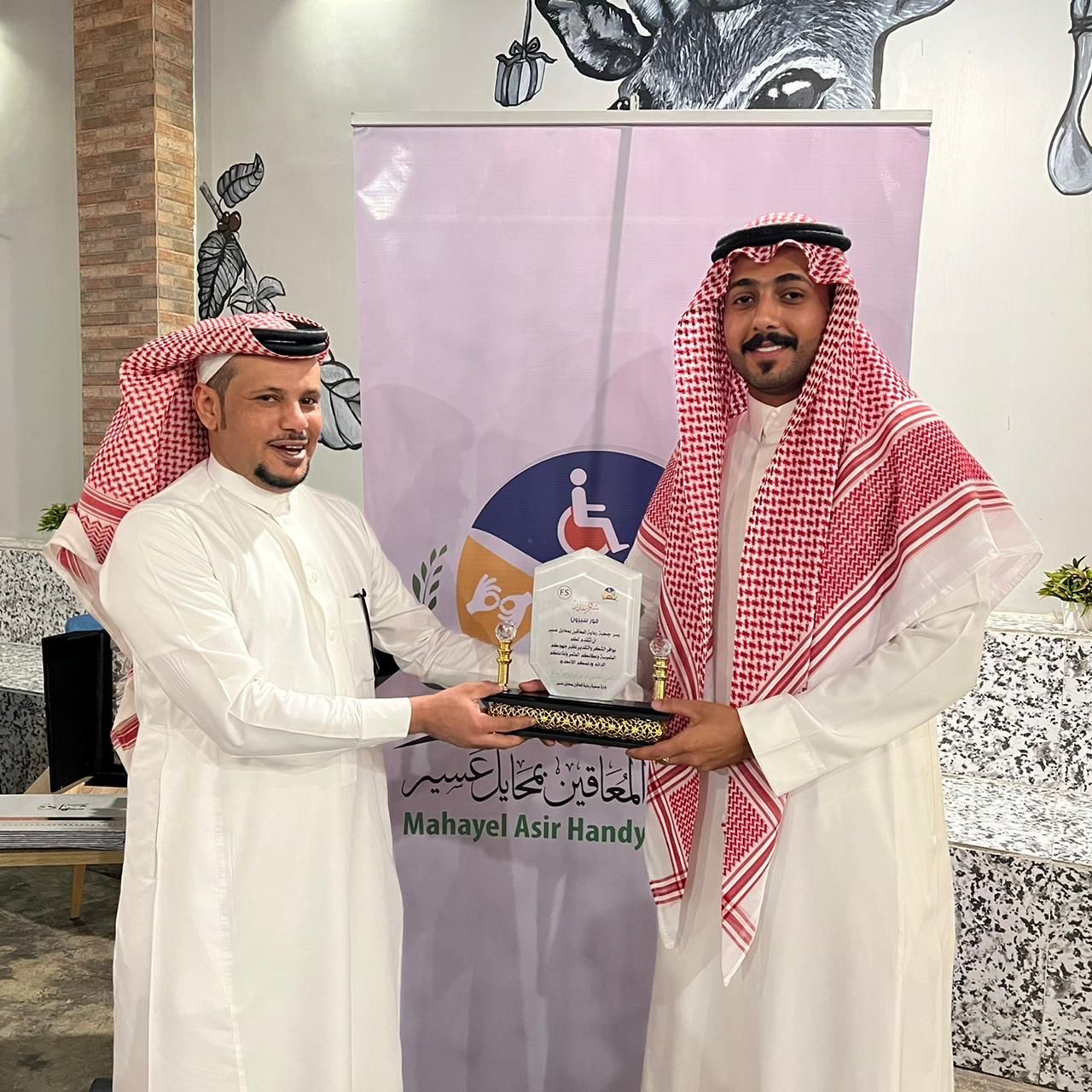 كرمت إدارة جمعية رعاية المعاقين بمحايل عسير عدد من الإعلاميين والإعلاميات بالمحافظة نظير جهودهم وتعاونهم في تغطية ونشر أخبار وبرامج الجمعية, ونيابة عن مدير الجمعية فقد كرم عضو الجمعية الأستاذ أمين محمد السيد الإعلاميين مساء يوم امس  الثلاثاء 06-12-1443هـ في كوفي فورسيزون, كما تم تكريم صاحب الكوفي الأستاذ مهدي أمين المصعبي لتعاونه واستضافته للحفل, وأوضحت مسؤولة المركز الإعلامي بالجمعية . أن هذا أقل ما نقدمه لشركاء النجاح وذلك لإبرازهم ونشرهم لأنشطة الجمعية عبر الصحف ومواقع التواصل الاجتماعي.