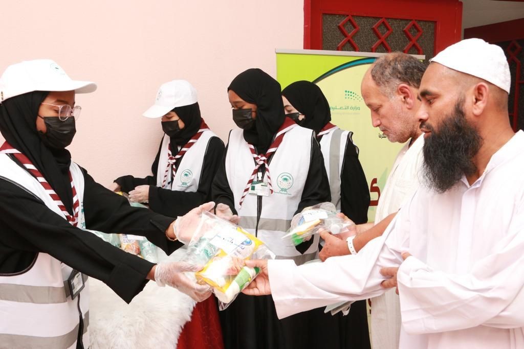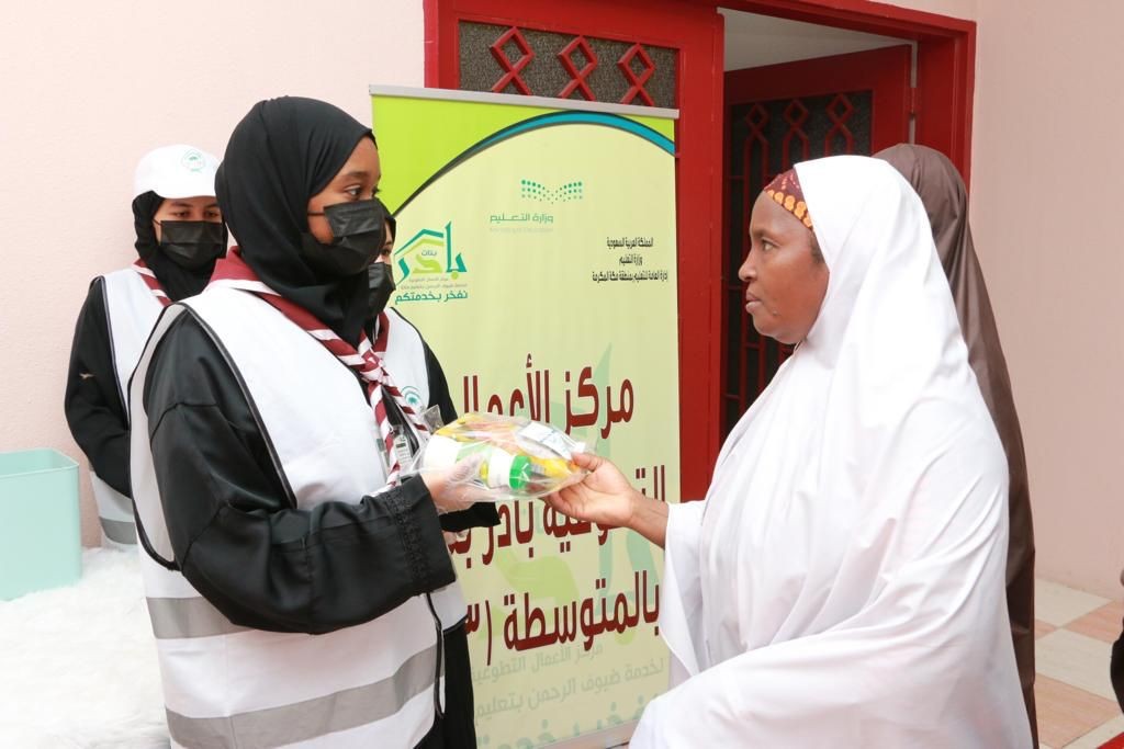 وزعت كشافة وزارة التعليم ١٧٢٥٠عبوة تمر على ضيوف بيت الله الحرام عبر أعمال مركز بادر الكشفي؛ لخدمة ضيوف الرحمن بشقيه (كشافين وفتيات) وذلك ضمن مسار (توزيع الوجبات) وهو أحد المسارات الخمسة التي تنفذها كشافة وزارة التعليم في خطتها لحج ١٤٤٣ هـ