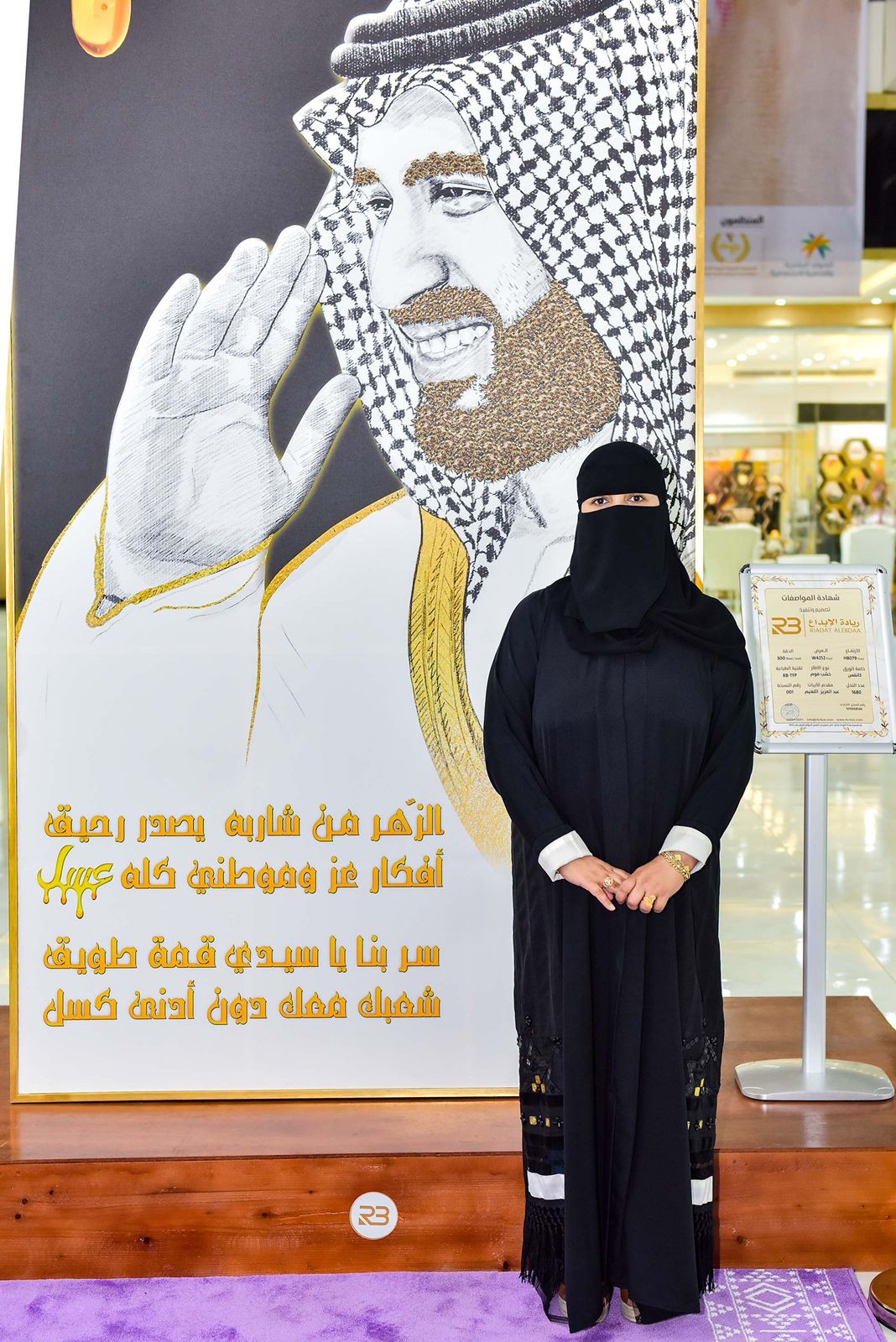 مصممون ينسجون بإستخدام " النحل " لوحة فنية تحمل صورة ولي العهد في مهرجان العسل الدولي بالباحة