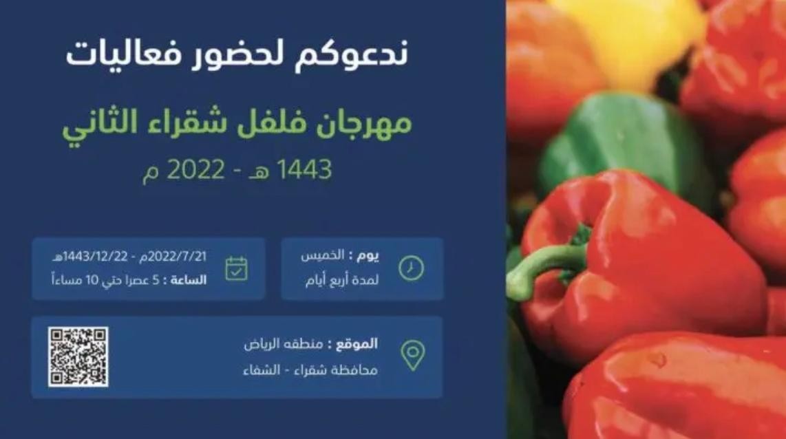 أطلقت وزارة البيئة والمياه والزراعة يوم امس الخميس الموافق 22 ذي الحجة مهرجان "فلفل شقراء الثاني"