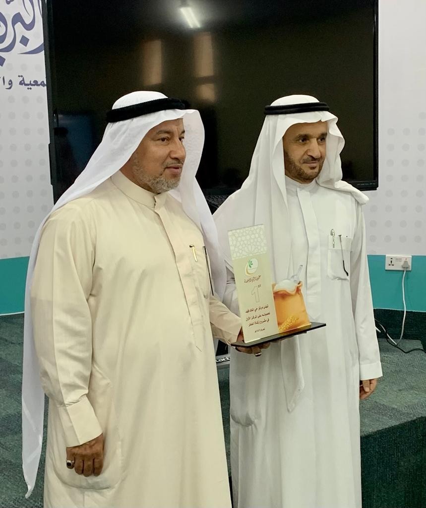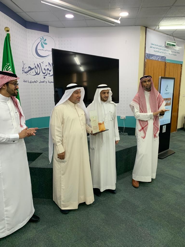 وقد تسلم الدرع، مدير المركز الأستاذ فاضل العمار ، وذلك في حفل المعايدة بعيد الأضحى المبارك ، والذي أقامته جمعية البر بالأحساء ، برعاية الأمين العام للجمعية، المهندس صالح العبدالقادر، والذي أشاد بجهود مركز حي الملك فهد ، وتعاون أعضائه وانسجامهم؛ الأمر الذي أدى إلى النهوض بهذا الصرح التطوعي .