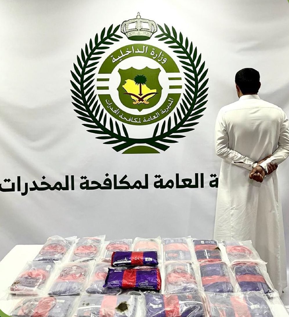 قبضت المديرية العامة لمكافحة المخدرات على مواطن بالمنطقة الشرقية، بحوزته (21.3) كيلو جراما من مادة الحشيش المخدر، وجرى إيقافه واتخاذ الإجراءات النظامية بحقه، وإحالته إلى النيابة العامة.