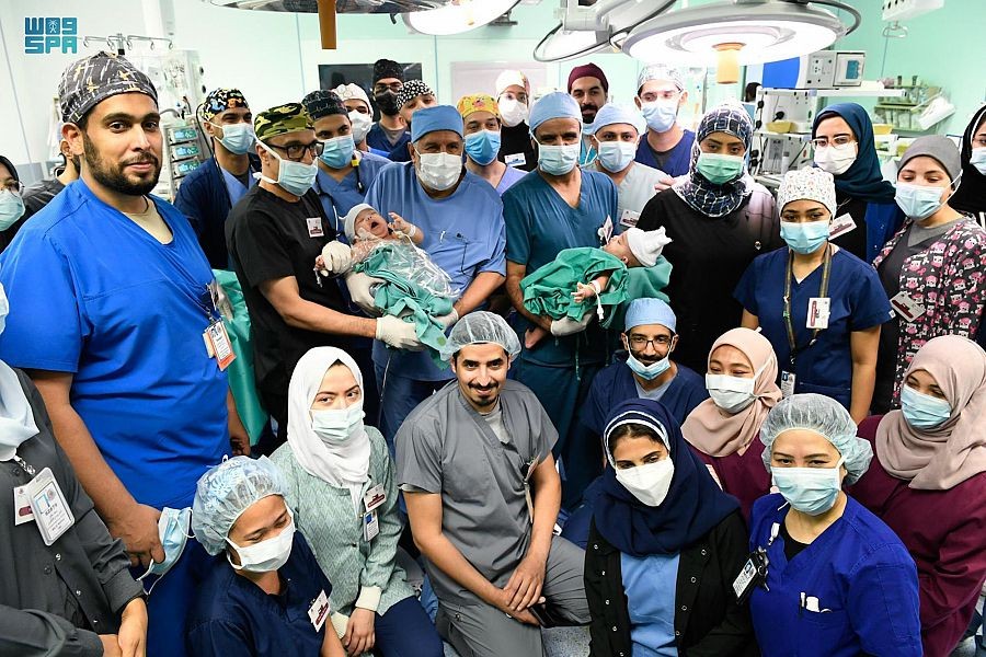 وإنفاذاً لتوجيهات خادم الحرمين الشريفين الملك سلمان بن عبدالعزيز آل سعود -حفظه الله- تمكّن الفريق الجراحي المختص من فصل التوأم السيامي اليمني “مودة ورحمة” أبناء عصماء ماجد محمد والانتهاء من العملية بنجاح.