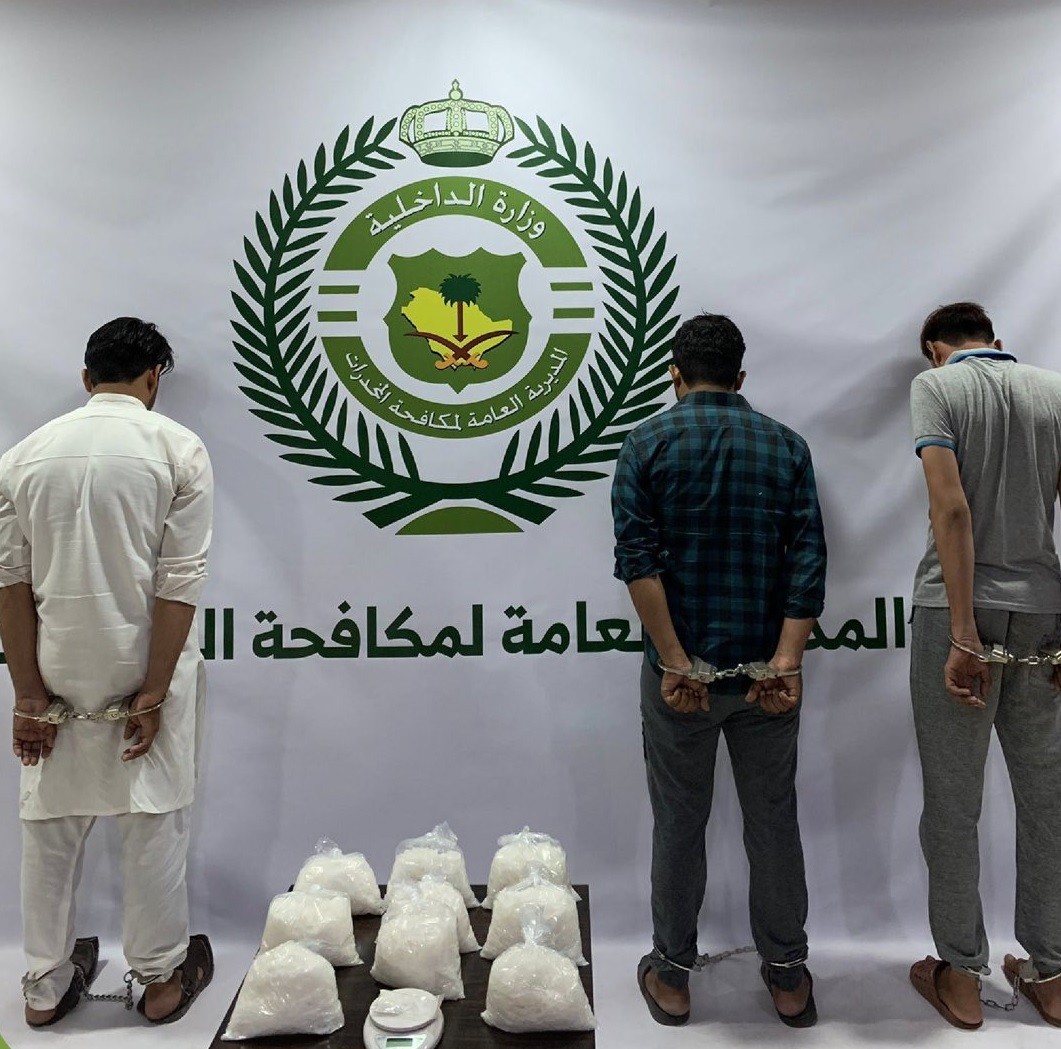 القت المديرية العامة لمكافحة المخدرات، القبض على 3 مقيمين من الجنسية الباكستانية بالمنطقة الشرقية، بحوزتهم 5.58 كيلوجرامات من مادة الميثامفيتامين "الشبو" المخدر. وجرى إيقافهم واتخاذ الإجراءات النظامية بحقهم، وإحالتهم إلى النيابة العامة.