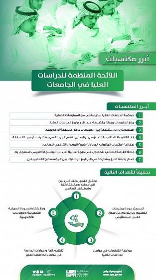 وتتيح اللائحة المنظمة للدراسات العليا في الجامعات استحداث برامج مشتركة بين الجامعات داخل المملكة أو خارجها، وكذلك تمكّن الطالب المسجل في برنامج الدراسات العليا من الحصول على درجة علمية أقل من البرنامج الأكاديمي المسجل به، وتمنح الطالب فرصة الالتحاق ببرنامجين للمرحلة نفسها في وقت واحد أو مرحلة سابقة، وإصدار وثيقة تخرّج معتمدة من مؤسستين تعليميتين بينهما برنامج مشترك، إلى جانب إمكانية احتساب المقررات المعادلة الداخلية والخارجية ضمن المعدل التراكمي للطالب.