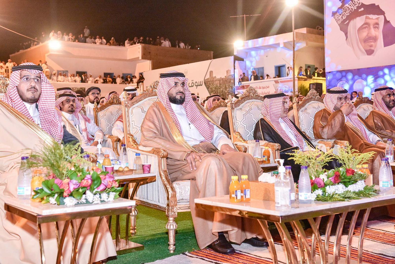 وبدأ الحفل الخطابي الذي أقامته جمعية التنمية الاجتماعية بالأطاولة؛ بالسلام الملكي ثم توالت فقرات الحفل ومنها فقرة لتكريم الجهات المشاركة والداعمين، و كان للأهالي كلمة ألقاها نيابة عنهم شيخ قبيلة قريش فهد بن جابر الحسين؛ ومن ثم شاهد الجميع أوبريتاً شعبيا من كلمات الشاعرين خالد بن جلسة وأحمد الدرمحي؛ وأداء المنشدين حسين آل لبيد وفالح آل صمان؛ بصُحبة عدة فرق شعبية، في حين اُختتم الحفل بعروض للألعاب النارية وسط زخات المطر وأجواء من الفرح والبهجة، شارك فيها الأهالي بأداء العرضة الجنوبية والرقصات الشعبية شاركهم فيها محافظ القرى هزاع بن قرملة.