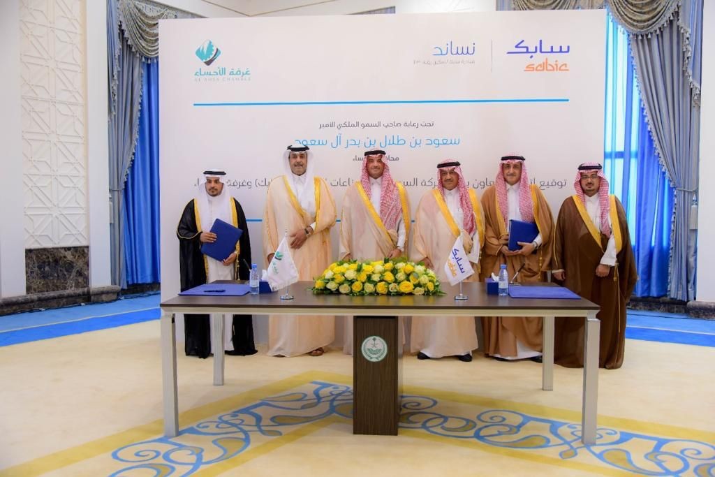 تحت رعاية صاحب السمو الملكي الأمير سعود بن طلال بن بدر  محافظ الأحساء  ،  تم توقيع  اتفاقية تعاون بين سابك وغرفة الأحساء في مبادرة ( سابك ) الوطنية "نساند ™️"  اليوم، "الخميس " ، وذلك في قاعة المناسبات بمقر محافظة الأحساء  ، وقد وقع اتفاقية التعاون المهندس عبدالله بن سيف العريفي، نائب الرئيس لوحدة المحتوى المحلي وتطوير الأعمال في (سابك)، والأستاذ إبراهيم بن أحمد آل الشيخ مبارك، أمين عام غرفة الأحساء، بحضور صاحب السمو الملكي الأمير سعود بن طلال بن بدر، محافظ الأحساء، وسعادة الأستاذ يوسف بن عبدالله البنيان، نائب رئيس مجلس الإدارة الرئيس التنفيذي لـ (سابك) وسعادة الأستاذ عبدالعزيز بن صالح الموسى رئيس مجلس إدارة غرفة الأحساء