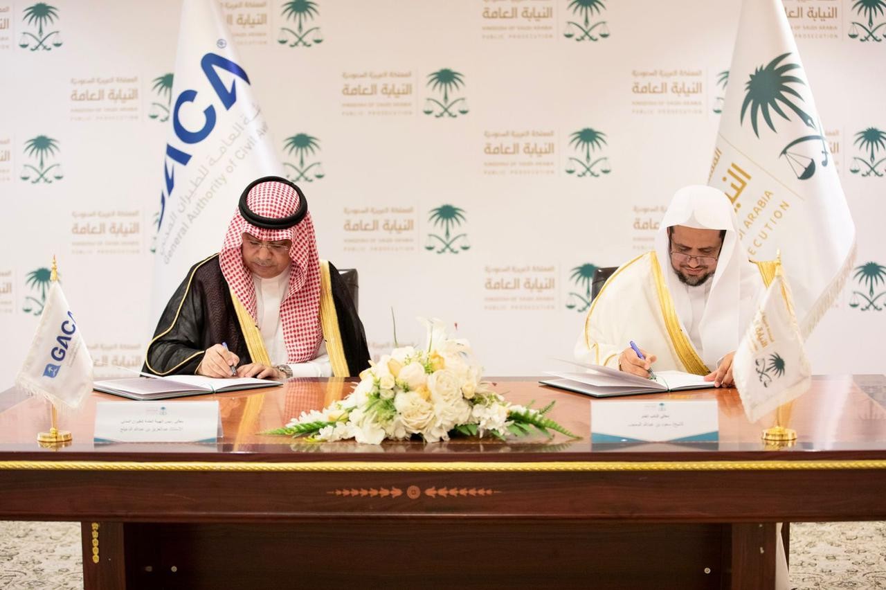 وقع معالي النائب العام الشيخ سعود بن عبدالله المعجب مع معالي رئيس الهيئة العامة للطيران المدني الأستاذ عبدالعزيز بن عبدالله الدعيلج بمقر النيابة العامة بالرياض اليوم مذكرة تفاهم تهدف إلى تعزيز التعاون وتطوير آليات العمل المشتركة مع مؤسسات الدولة تحقيقاً لمتطلبات ومستهدفات رؤية 2030.