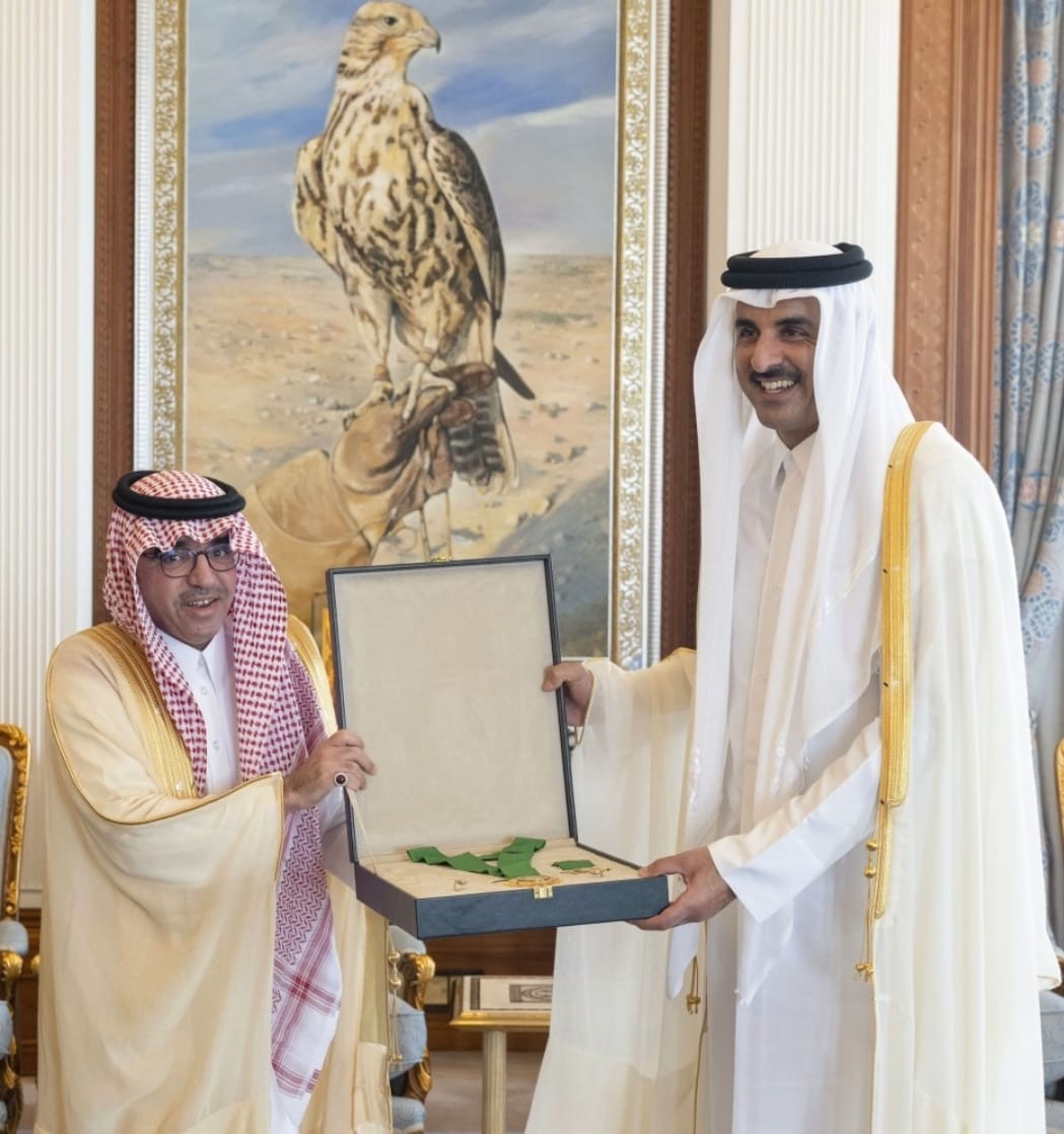** تسلم حضرة صاحب السمو الشيخ تميم بن حمد آل ثاني أمير دولة قطر قلادة السياحة العربية من الطبقة الممتازة من المنظمة العربية للسياحة وذلك تقديرا لجهود سموه المستمرة لدعم وتنمية العمل العربي المشترك في شتى مجالاته وخاصة السياحة .. جرى ذلك خلال استقبال سموه لمعالي الدكتور بندر بن فهد آل فهيد رئيس المنظمة العربية للسياحة والوفد المرافق له في مكتبه بالديوان الأميري صباح اليوم حيث أثنى سموه على جهود المنظمة وانجازاتها منذ تأسيسها .