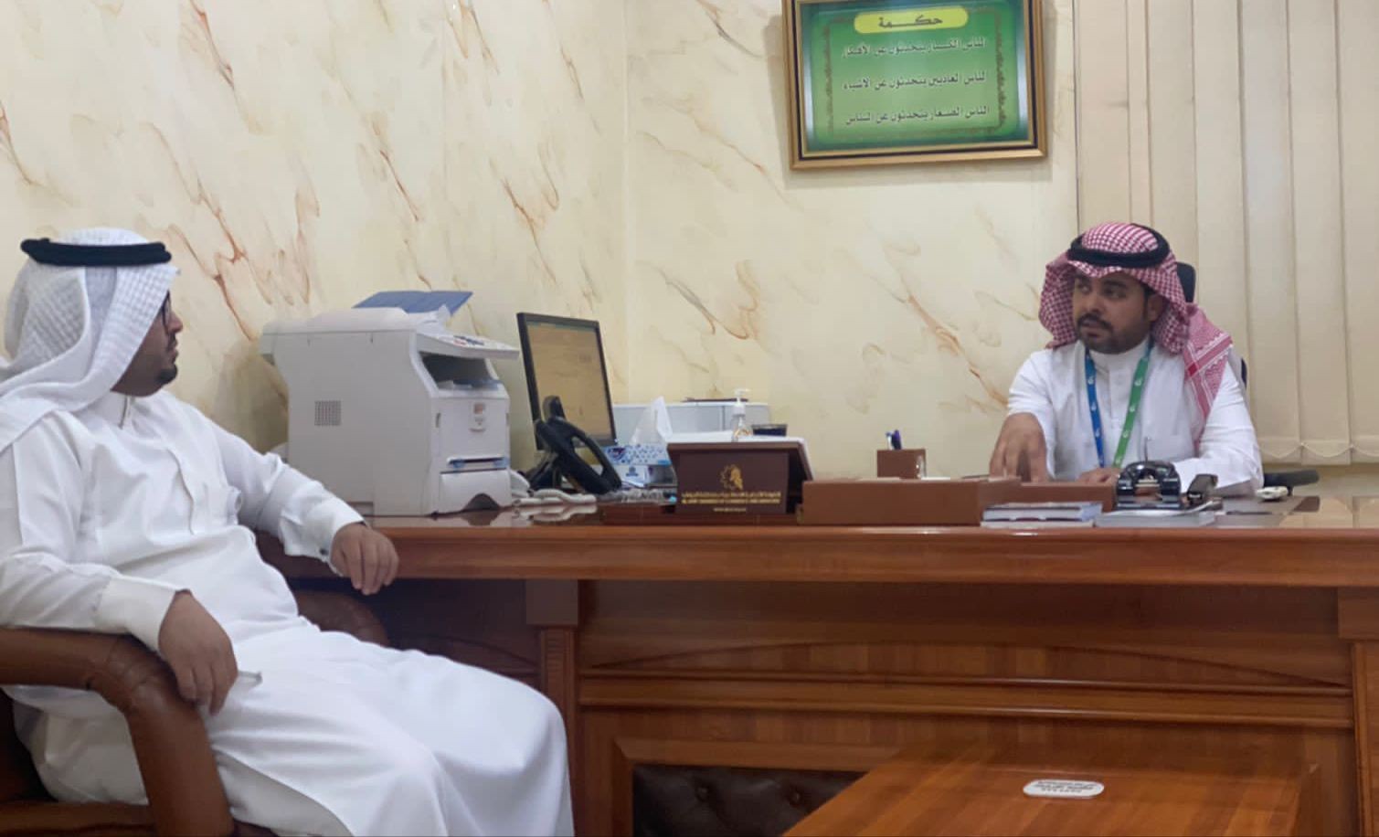 اجتمع يوم الاحد الموافق ١٤٤٤/١/١٦هًـ مدير مكتب الضمان الاجتماعي بالجوف بالانابة الاستاذ / عبدالرحمن بن كريم الفهيقي بمساعد مدير فرع بنك التنمية الاجتماعية بالجوف الاستاذ/ يزيد محمد الطويرب خلال استقباله بمقر البنك .