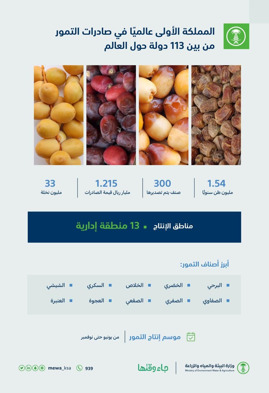 المملكة الأولى عالميًّا ضمن 113 دولة بتصدير أكثر من 300 صنف من التمور