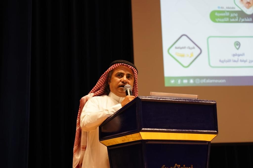 وبدأت بكلمة لمدير الأمسية الشاعر أحمد الكبيبي المشارك في مسابقة أمير الشعراء النسخة الثامنة حيث رحب فيها بالشعراء المشاركين في الأمسية الشاعر حسن القرني والشاعر إبراهيم حلوش وقد قدم مدير الأمسية الشعراء مبرزاً إسهاماتهم الشعرية والأدبية وانجازاتهم في مجال الشعر والأدب.