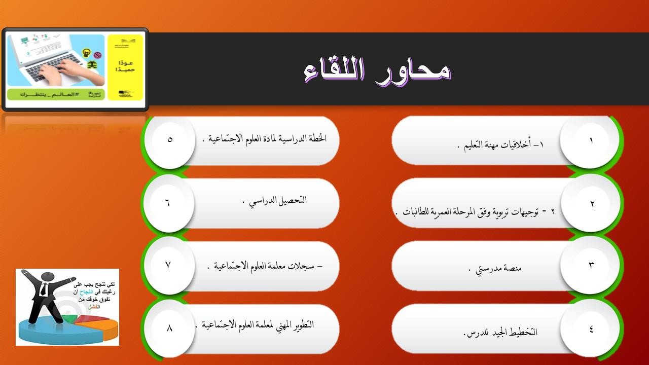 استهدف اللقاء ٢٠ معلمة من معلمات العلوم الاجتماعية والمواطنة وذلك بهدف نشر القيم والمبادئ الأخلاقية المهنية والوطنية والتعليمية لدى المعلمة وتعزيزها لتحقق رؤية ٢٠٣٠ لوطن طموح وتثقيف المعلمة لأهم المستجدات في الميدان التربوي وتعزيز قيم الانتماء الوطني لدى الطالبات.