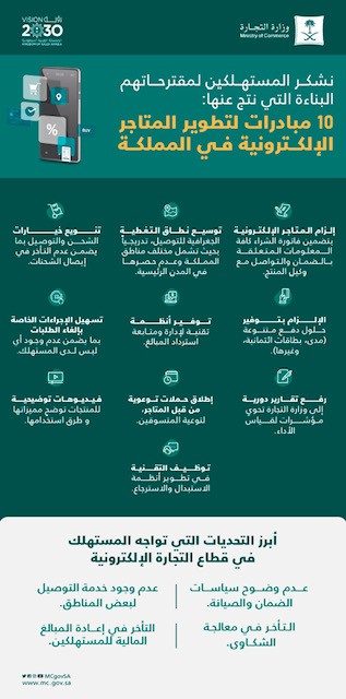 وبناء على نتائج الاستبانة أقرت الوزارة 10 مبادرات لتطوير عمل المتاجر الإلكترونية، وهي: